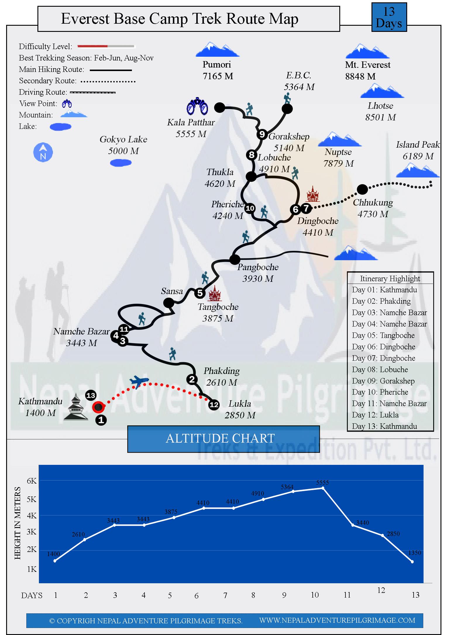 Il percorso è moderato se pianificato correttamente. Nepal Adventure Pilgrimage Treks crea sempre il miglior itinerario per i nostri clienti più importanti. Il nostro itinerario è preparato da esperti con oltre due decenni di esperienza nel trekking in Nepal, garantendo un’alta percentuale di successo.